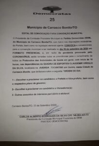 Carrasco Bonito- Democratas convoca Pré- candidatos para convenção presencial