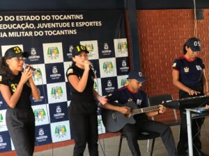 Foto: 04 FOTO 01 Culminância do projeto ‘Um Olhar Literário: Apreciação das Obras Clássicas Brasileiras, desenvolvido na Escola Estadual Aldinar Gonçalves de Carvalho. FOTO 02 Estudantes participam das quintas culturais no Colégio Militar do Estado do Tocantins - Professora Antonina Milhomem FOTO 03 A professora Cleane Sales Moreira ofertando aulas de reforço, no contraturno, de forma voluntária
