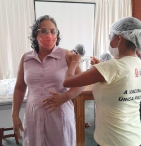 A vacinação dos profissionais da educação começa a avançar no Tocantins, principalmente depois que o governador Mauro Carlesse (PSL), sancionou uma nova lei que torna as atividades educacionais e escolares serviços essenciais no estado. A medida vai favorecer o retorno as aulas hibridas, presenciais e remotas, ainda este ano. Os profissionais da Escola Sampaio sediado no município de Sampaio, na região do bico do Papagaio, começaram no início do mês de junho a receber a primeira dose da vacina contra a COVID-19 e pelo entusiasmo observado, estão felizes e agradecidos a Deus e a ciência por esse momento especial, pois segundo eles, o retorno as aulas se torna mais seguro com a vacina. “Foi um momento especial, estava ansiosa para receber a primeira dose da vacina, pois acredito na ciência como ferramenta para debelar esse vírus mortal”, destacou Madalena Coordenadora pedagógica da U.E “Esse momento foi muito aguardado, pois com a vacina, o retorno as aulas, será mais seguro para todos, destacou a professora Maria do Rosário, Para a diretora Sandra, esse momento é de muita alegria e gratidão. O calendário de vacinação no município, iniciou com os profissionais com idade entre 55 a 59 anos e na última semana a idade caiu de 40 a 54 anos.