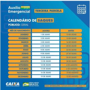 O saque originalmente estava previsto para ocorrer em 16 de julho, mas foi antecipado em quase duas semanas por decisão da Caixa. Segundo o banco, a adaptação dos sistemas tecnológicos e dos beneficiários ao sistema de pagamento do auxílio emergencial permitiu o adiantamento do calendário.
