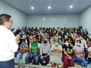 Em um evento que marcou a cidade de Palmeiras-TO, a cerca de 500 km da capital Palmas, situada na região do Bico do Papagaio, foi lançado na noite de terça feira, 16 de novembro, o projeto Recriar Vidas, atendendo 130 profissionais de diversas áreas, entre elas educação, assistência social, saúde e conselho tutelar. A solenidade contou com a presença do Prefeito Municipal Júnior Nolêto, de diversos secretários municipais e vereadores, e teve palestra do consultor Geferson Barros e do proprietário da empresa Ricardo Ribeirinha. Na oportunidade, Ribeirinha ministrou palestra sobre a obra “Viver de Cara Limpa, Uma Escolha”, que narra sua trajetória de vida da infância até a recuperação na Fazenda da Esperança. A palestra gerou comoção nos participantes, que espontaneamente cantaram, comentaram a palestra, se emocionaram e compartilharam diversos depoimentos. Para o prefeito Júnior Nolêto, este é um projeto que demonstra a valorização da educação e da rede de pessoas que cuidam de outras pessoas na cidade e na região. “Eu insisti em trazer esse projeto para Palmeiras, desde quando me reuni com o Ricardo em Palmas, por compreender a importância de cuidar da nossa equipe. Faço coro com outros gestores que já fizeram o projeto e eu dialoguei com eles, entendo que obras são importantes, mas paralelo a isso precisamos observar o que está acontecendo com nossas crianças e jovens. E o que acontece é triste. São casos de violência, abusos, consumo excessivo de álcool, entre outros. Feliz por ter o projeto aqui, sei que vamos evoluir e melhorar e acima de tudo dar exemplo pra nossa região do Bico”, afirmou o gestor municipal.