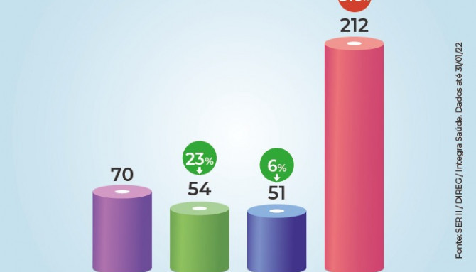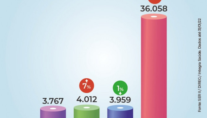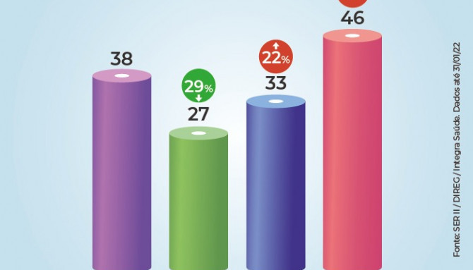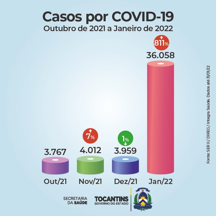 Segundo as tabelas, em janeiro de 2022, o Estado registrou 36.058 novos casos da covid-19, o que corresponde a 811% de aumento em relação aos 3.959 confirmados em dezembro de 2021. No que tange aos óbitos, foram 46 em janeiro de 2022, 39% a mais que os 33 ocorridos em dezembro de 2021.