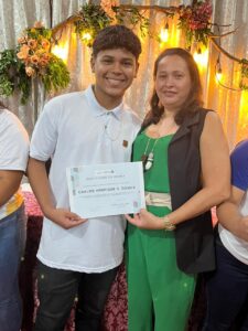 O evento aconteceu no sábado dia 16 de dezembro as 19:00 nas dependências da instituição de Ensino e contou com a presença dos pais, estudantes e servidores. O momento foi marcado com apresentação de poemas, músicas e peças teatrais destacando o momento Natalino como ponto alto do evento. A presença do Maestro Geone foi marcante com apresentação de músicas gospel além de outras que faziam parte do repertório. Os estudantes destaques foram homenageados, como incentivo pelos resultados alcançados, receberam certificados e alguns prêmios, para que continuem com suas jornadas e obtenham ainda mais sucesso na vida acadêmica. A Escola Estadual Sampaio atende estudantes do ensino fundamental e médio nos três turnos de ensino. É a única escola estadual do município e tem como diretora Sandra Batista que vem desenvolvendo um trabalho à frente da instituição há alguns anos. Para Irislene Neves de Abreu mãe de uma aluna do oitavo ano, destaca como importante a iniciativa da escola. “Esse tipo de evento, serve como incentivo, tanto para os pais, quanto para os estudantes, com relação ao acompanhamento dos alunos durante o ano letivo. Já o Natal solidário é importante para ajudar as famílias carentes do município”. Para o estudante Taylan Silva Costa, concluinte do segundo ano do ensino médio “esses tipo de evento incentiva os estudantes a perseverar, na busca de destaque e com isso adquirindo mais conhecimentos, portanto é positivo”. Finalizando o evento, a diretora agradeceu aos servidores e parceiros que contribuíram para a realização desse momento, que já é organizado há oito anos e sempre com sucesso, mesmo depois de dois anos de pandemia. Este ano, foram arrecado alimento que deu pra organizar 60 kits alimentação que serão distribuídas às famílias carentes do entorno da Escola “O nosso futuro, está nas mãos desses estudantes, tanto de Sampaio, quanto do Tocantins e do Brasil” concluiu Sandra Batista diretora da Instituição