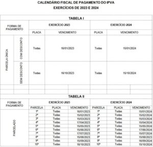 O governo do Tocantins manteve o modelo de cobrança do Imposto sobre a Propriedade de Veículos Automotores (IPVA) pelos próximos dois anos. O calendário para os exercícios de 2023 e 2024 foi publicado no suplemento do Diário Oficial do Estado desta terça-feira (27). Veja as tabelas abaixo