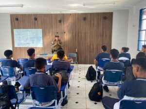 Já no dia 24 de maio, foi realizada uma roda de conversa com a presença do 2º Sargento Graciano Alves Ramos Neto, conhecido como Sargento Ramos. O encontro proporcionou aos estudantes uma reflexão sobre a relevância dos conhecimentos acerca do trânsito e movimento na sociedade atual, com um enfoque especial no respeito à sinalização existente nas vias públicas. Durante a conversa, foram abordados assuntos como a Lei 9523/97, o CTB, regras de circulação, infrações de trânsito, multas e suas consequências tanto para pessoas físicas quanto para jurídicas. O palestrante detalhou minuciosamente esses tópicos, fornecendo informações importantes aos estudantes.