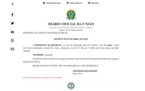 e publicado no "Diário Oficial da União" desta sexta-feira (24). Na quinta, Moro havia